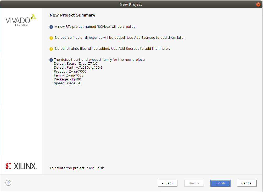 If no error occurs the project is ready to be downloaded into the Zynq board.