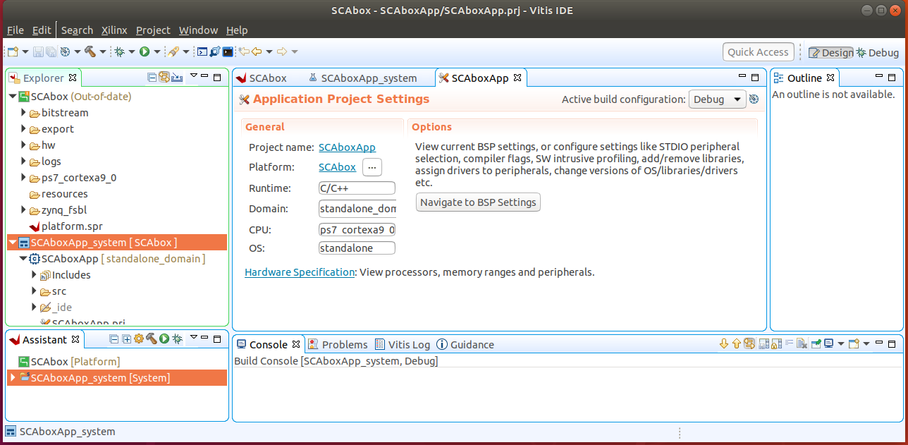 Right click on the SCAboxApp/cmd/main.c source in the arborescence and select properties.