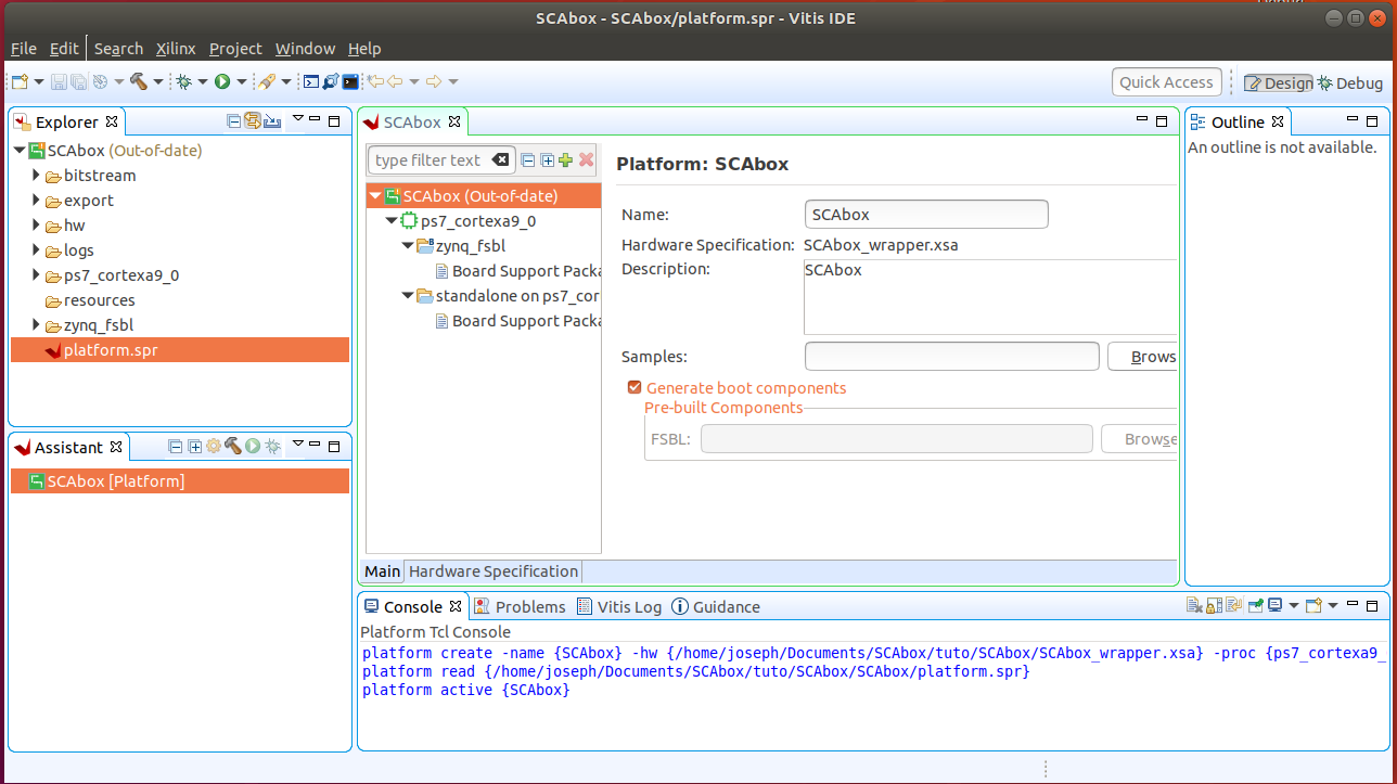 At this point Vivado must have created a .xsa file at the location you gave. This file will later be used by Vitis to generate a platform project that will handle all our hardware and drivers for the design we created.
